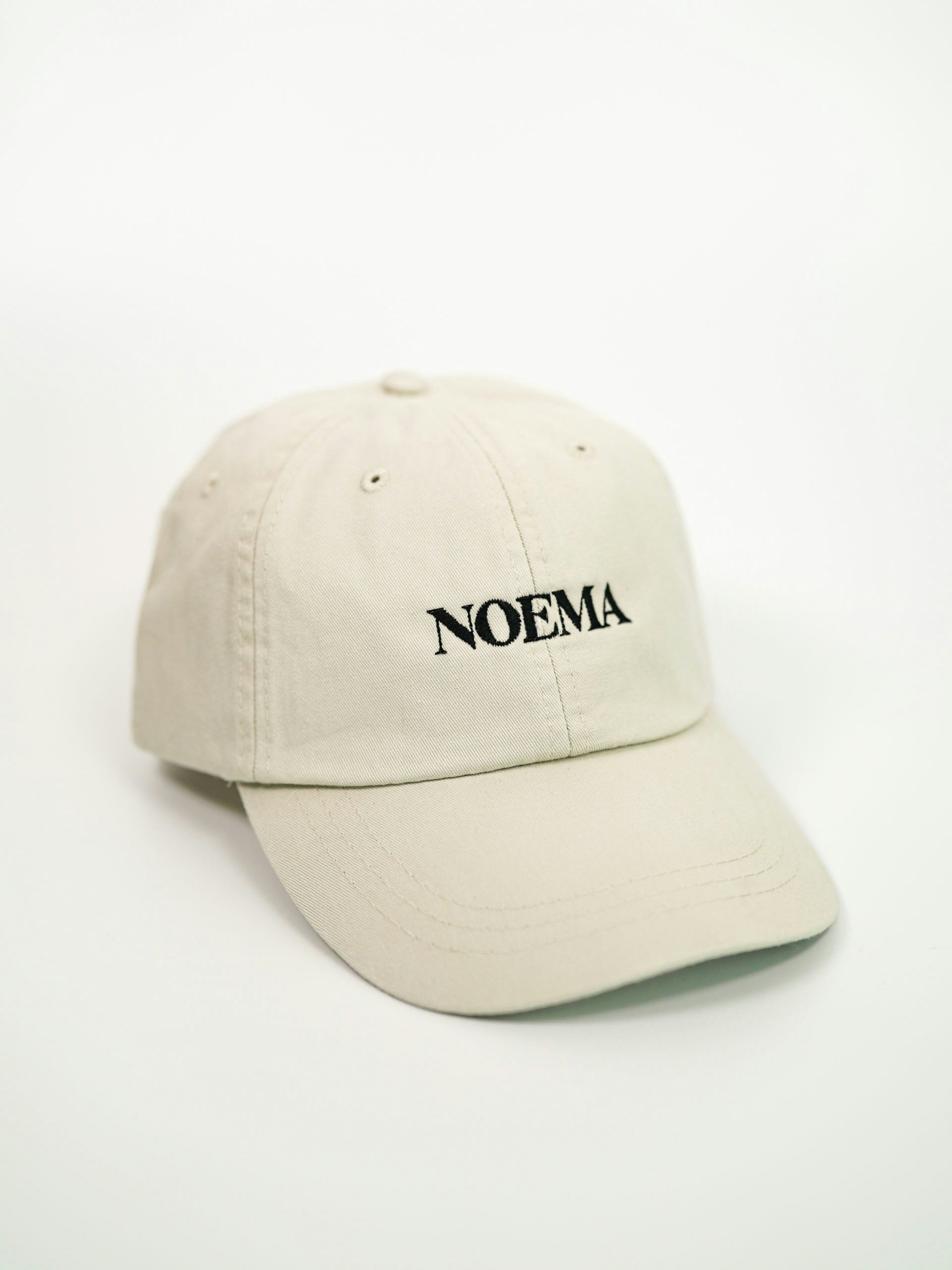 A low-profile hat design with an embroidered Noema logo, leather strap and brass clasp.